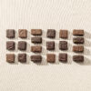 Les Pralinés sont sablés à l’eau de bouleau et travaillés à partir des fines écorces des fèves de cacao, ce qui leur confère un craquant unique et subtil. Les Ganaches sont revisitées tout en légèreté et sans sucre à l’intérieur.